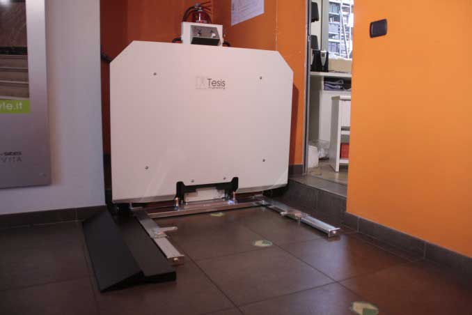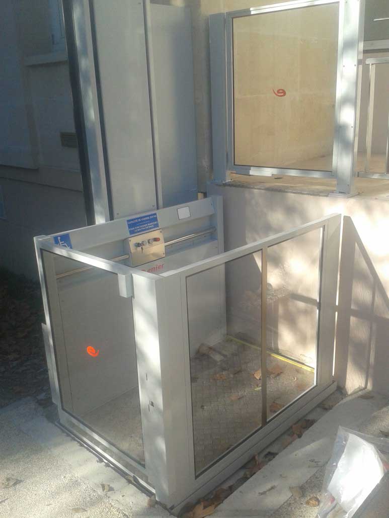 Les plateformes installées respectent la directive européenne 2006/42/CE. Elles disposent de dispositifs de sécurité avancés : arrêt d’urgence, capteurs de surcharge, frein automatique et batteries de secours. Les matériaux utilisés (acier traité, aluminium, verre de sécurité) assurent une excellente résistance dans le temps, même en extérieur.