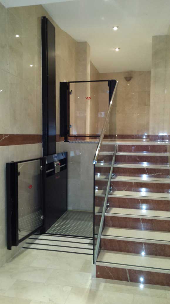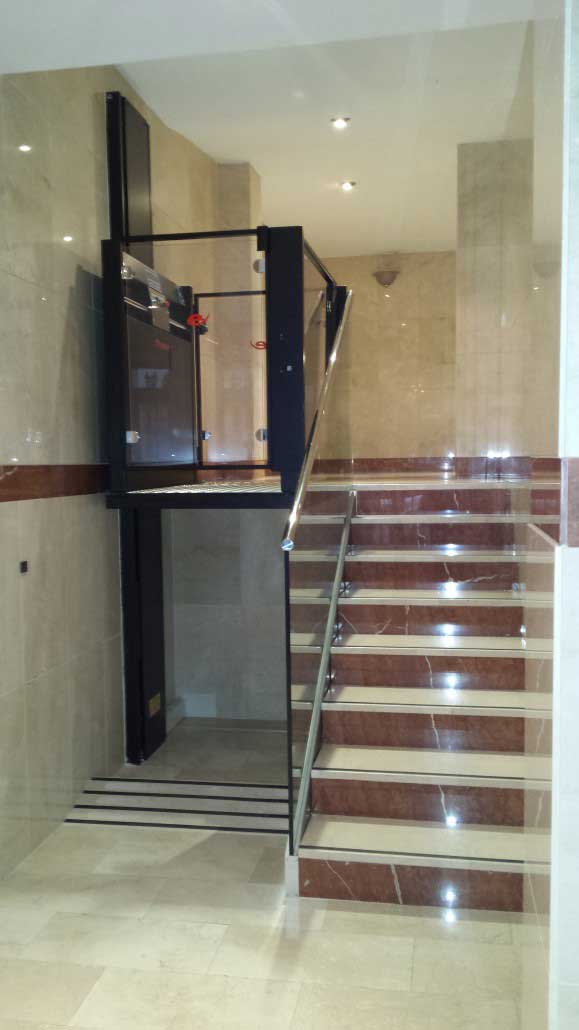 Maison individuelle, immeuble collectif, commerce ou établissement recevant du public : chaque configuration trouve sa solution. Les plateformes peuvent être intégrées dans une structure vitrée ou habillée de panneaux assortis à l’intérieur du bâtiment pour une finition harmonieuse.
